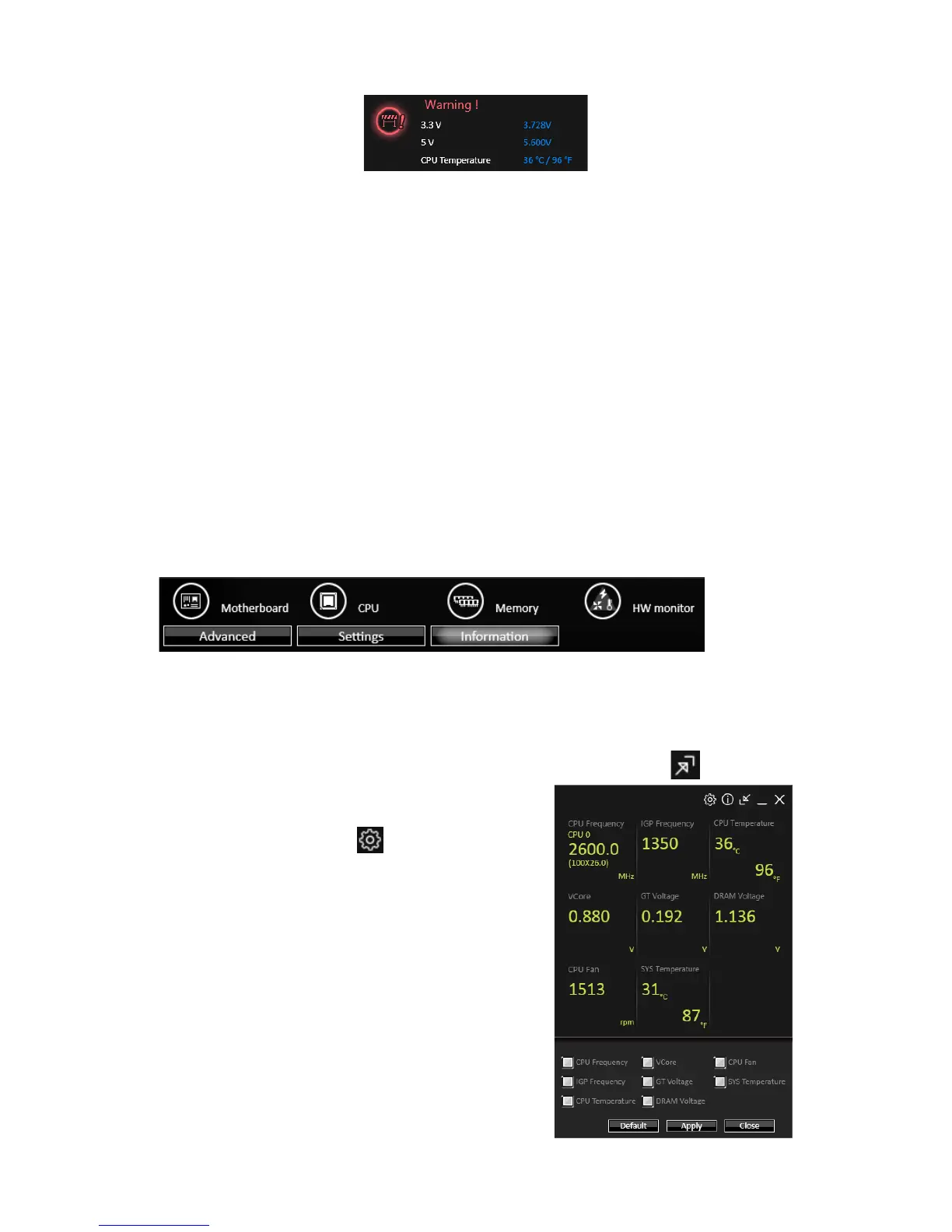 When click the Information button, The Motherboard, CPU, Memory and HW monitor