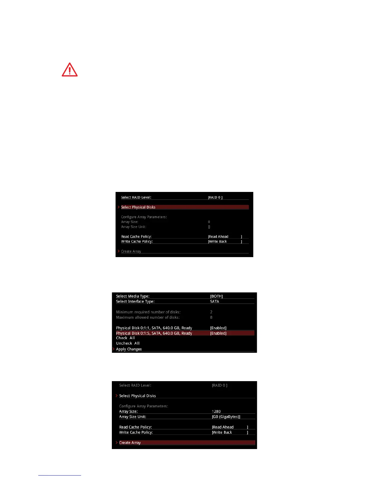 8. Enter Select Physical Disks sub-menu, select member disks by changing the
