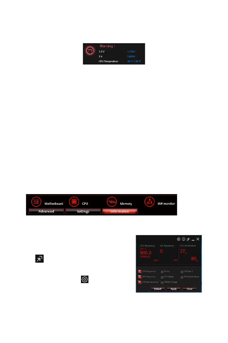 When click the Information button, The Motherboard, CPU, Memory and HW monitor