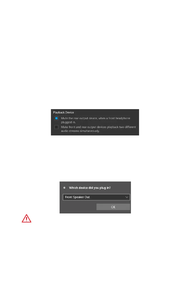 2. Select Mute the rear output device, when a front headphone plugged in.