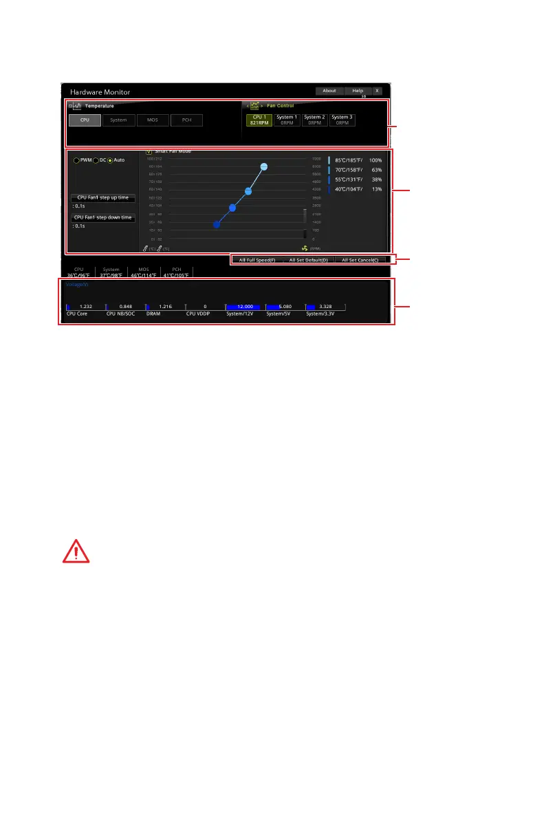 If the current CPU temperature reaches to the target value, the Smart Fan function