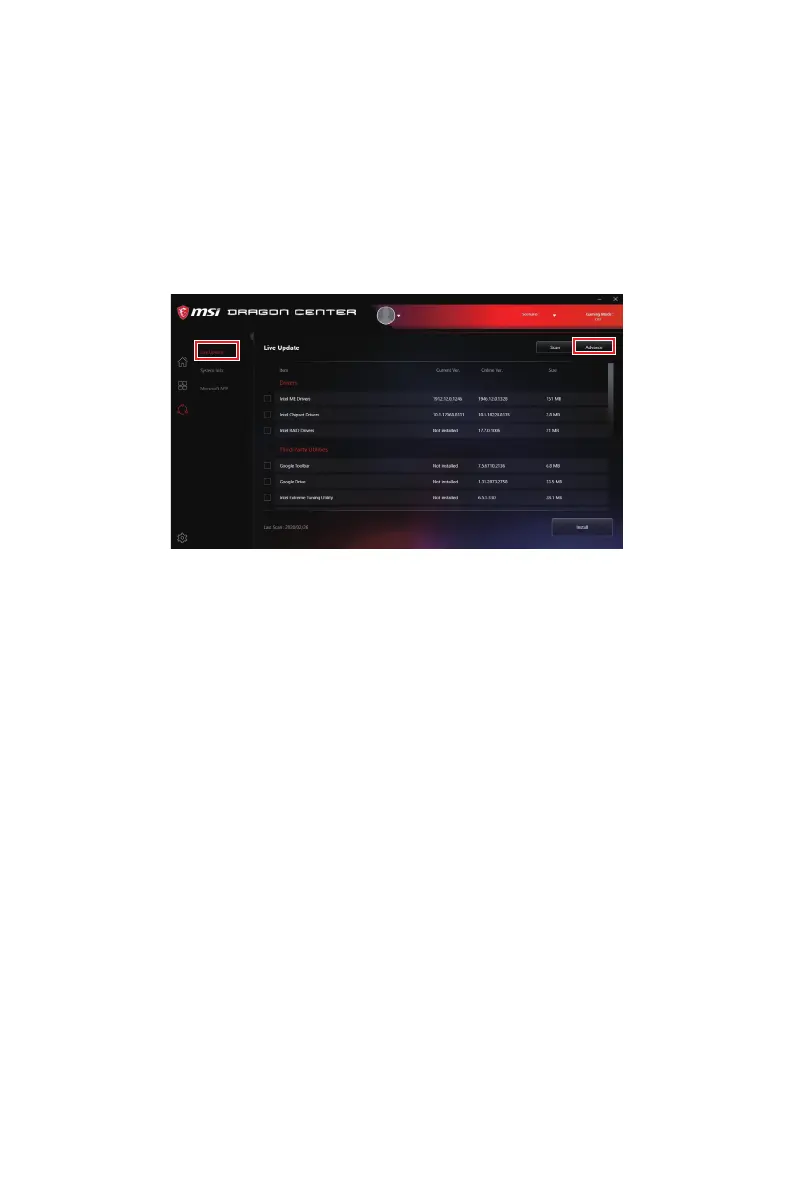 2. Выберите Live Update и нажмите кнопку Advance.