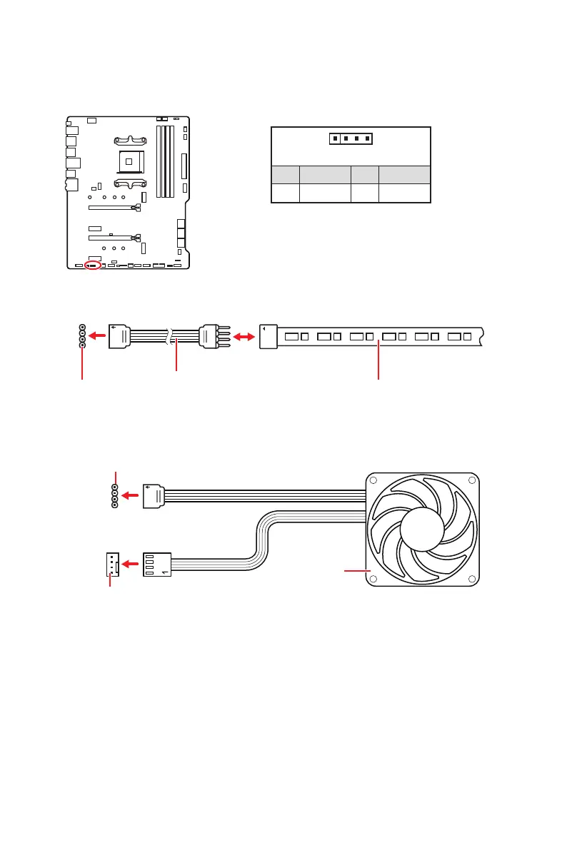 Der JRGB Anschluss unterstützt bis zu 2 Metern 5050 RGB LED-Streifen (12V/G/