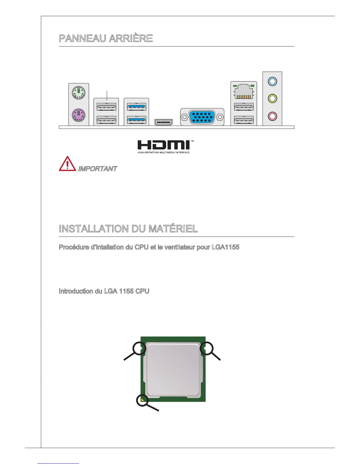 MSI B75MA-E2 - Panneau Arrière; Installation du Matériel