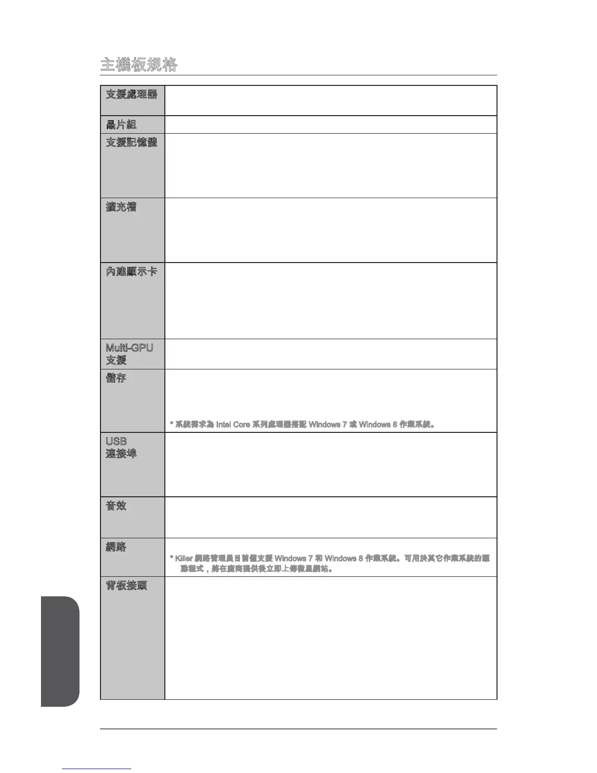 * 系統需求為 Intel Core 系列處理器搭配 Windows 7 或 Windows 8 作業系統。