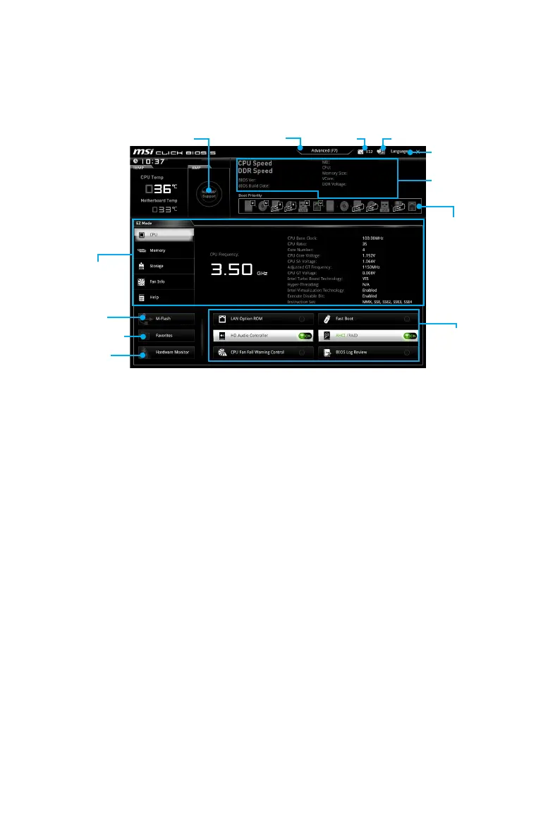 y System information - shows the CPU/ DDR speed, CPU/ MB temperature, MB/ CPU