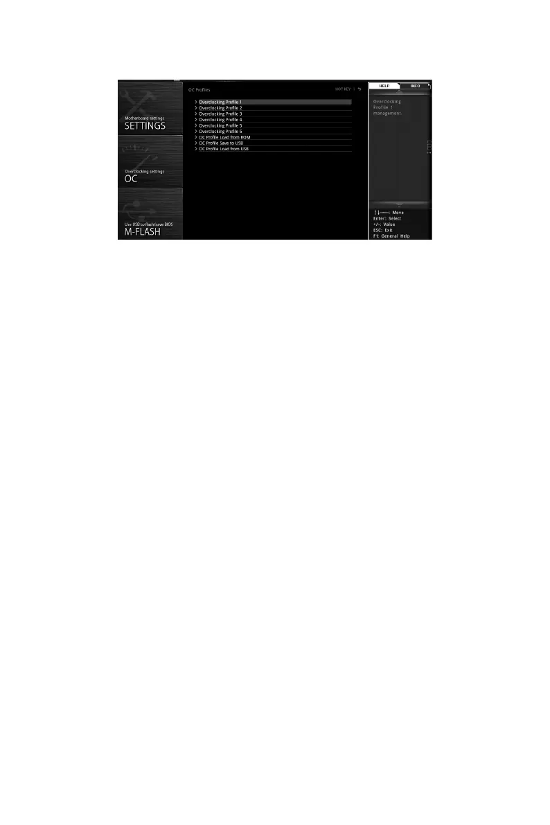 Overclocking Profile 1/ 2/ 3/ 4/ 5/ 6 management. Press <Enter> to enter the sub-