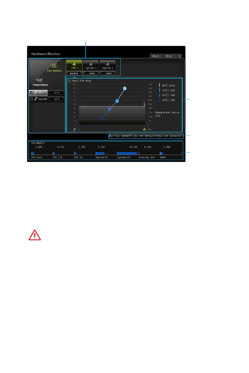 the CPU/ system fan will run at the corresponding speed. In this field, drag the color