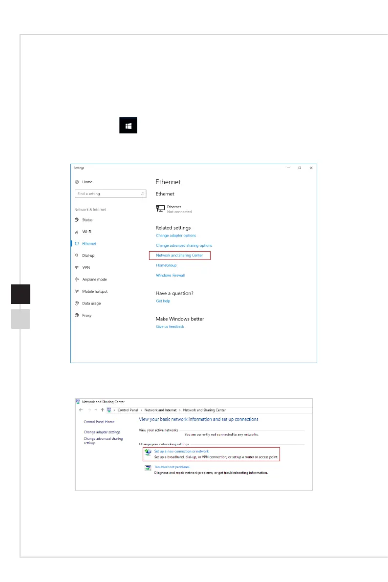 2� Select [Ethernet] and then [Network and Sharing Center]�