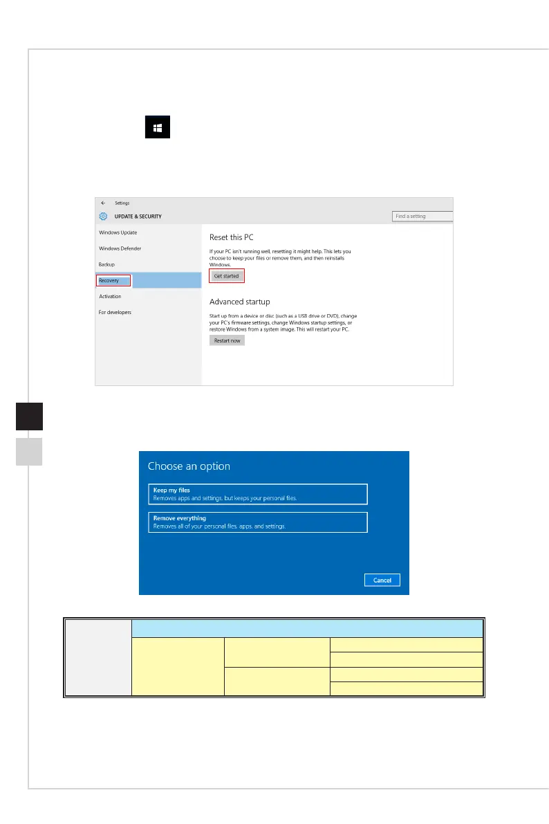 2� Select [Recovery] and click [Get started] under [Reset this PC] to start the system