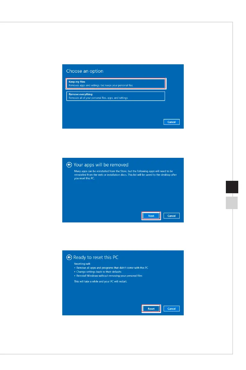 3� The next screen will show the changes to be made during the process� Click [Reset]