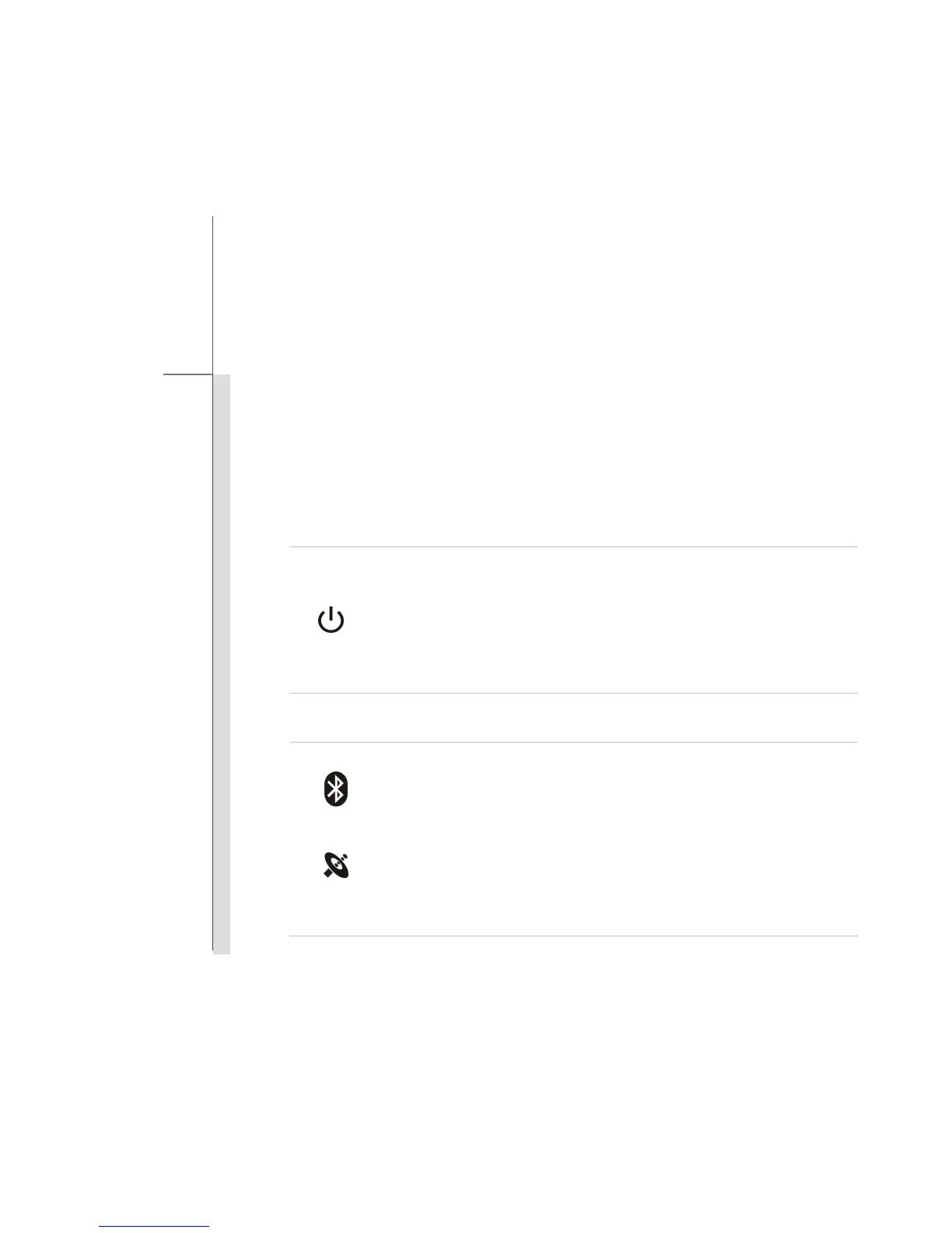 Bluetooth LED indicator glows blue when Bluetooth function is enabled.