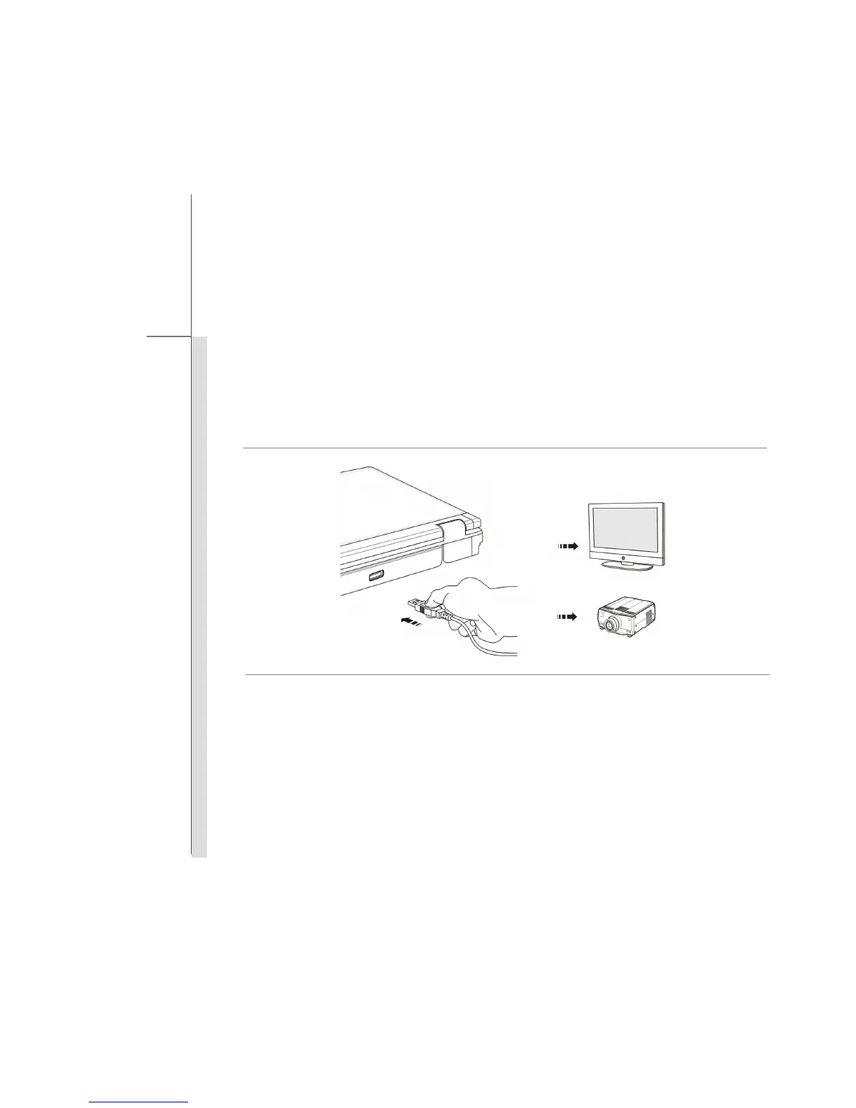 To connect the external display, make sure the notebook and the external display are both powered