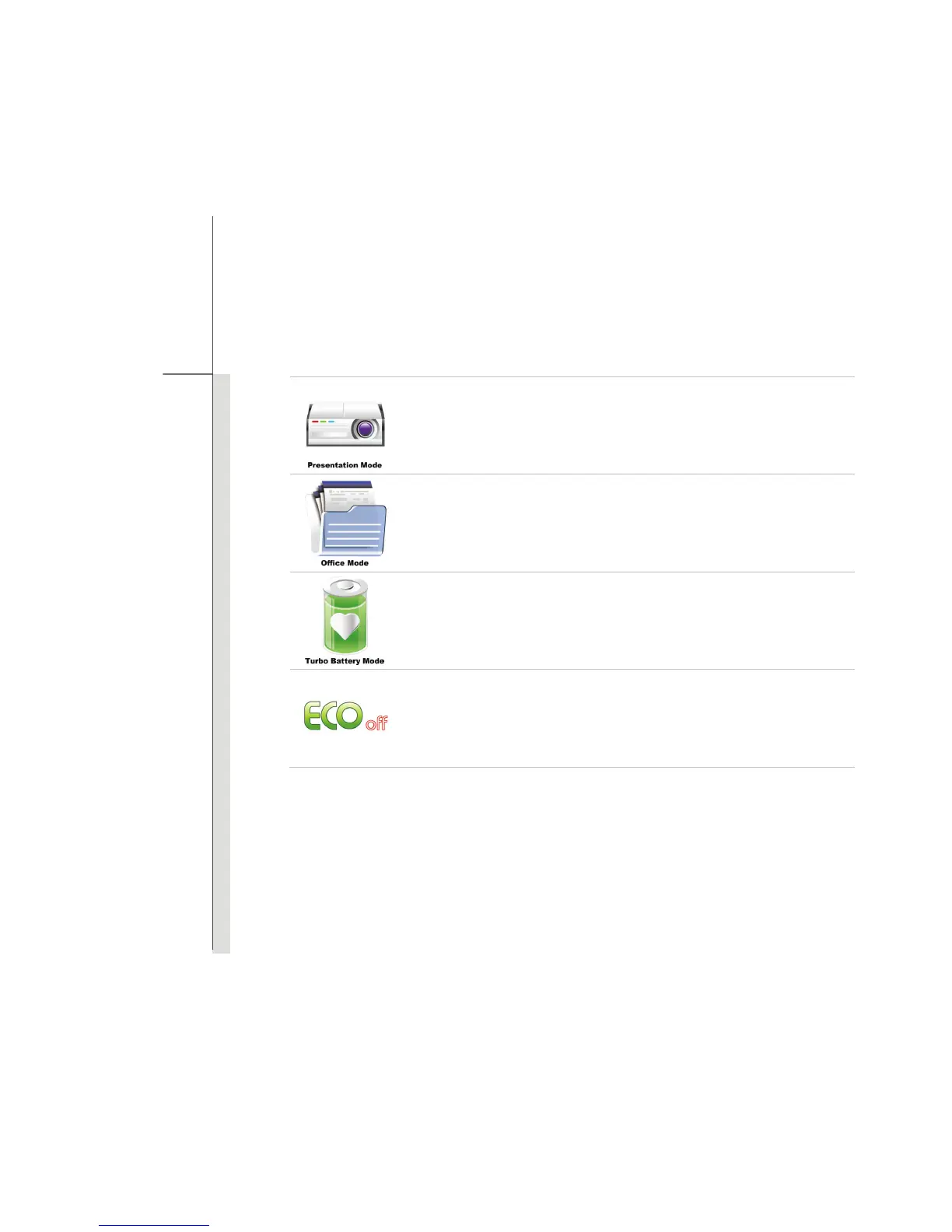 Select this mode to maximize the battery running time.