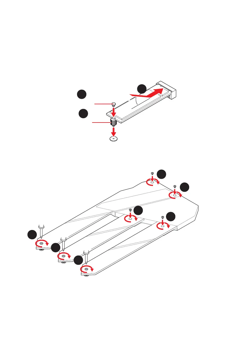 3. For 2242/ 2260 M.2 SSD, please move and fasten the M.2 standoff to the
