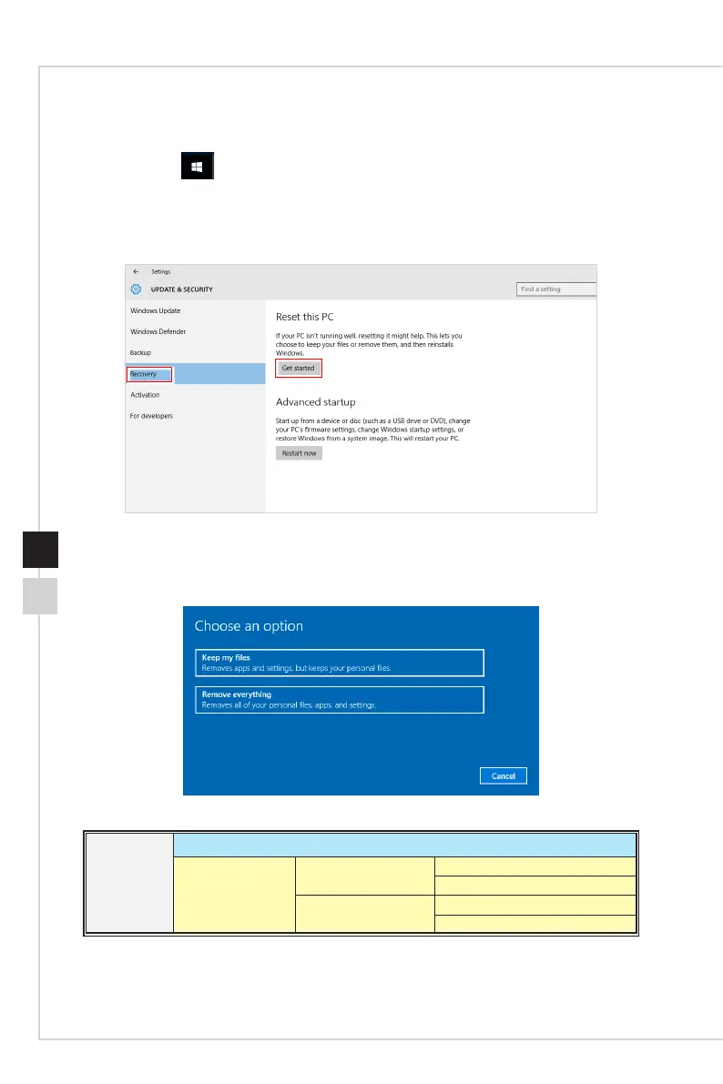 2� Select [Recovery] and click [Get started] under [Reset this PC] to start the system
