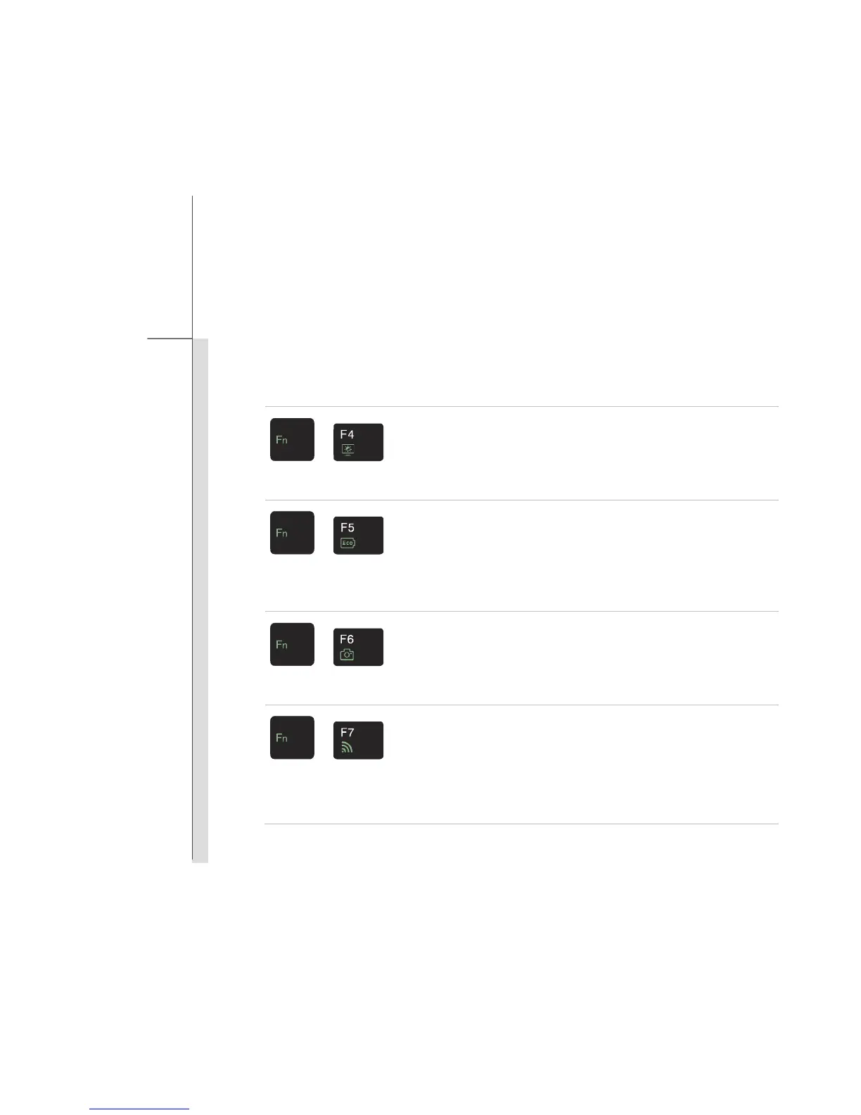 Use the [Fn] buttons on the keyboard to activate the specific applications or tools.