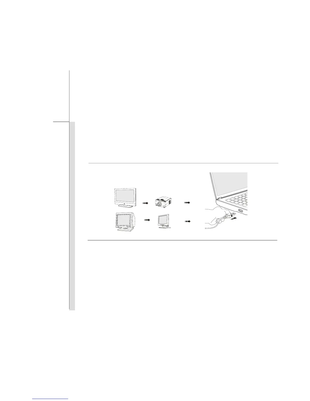 To connect the external display, make sure the notebook and the external display are both powered