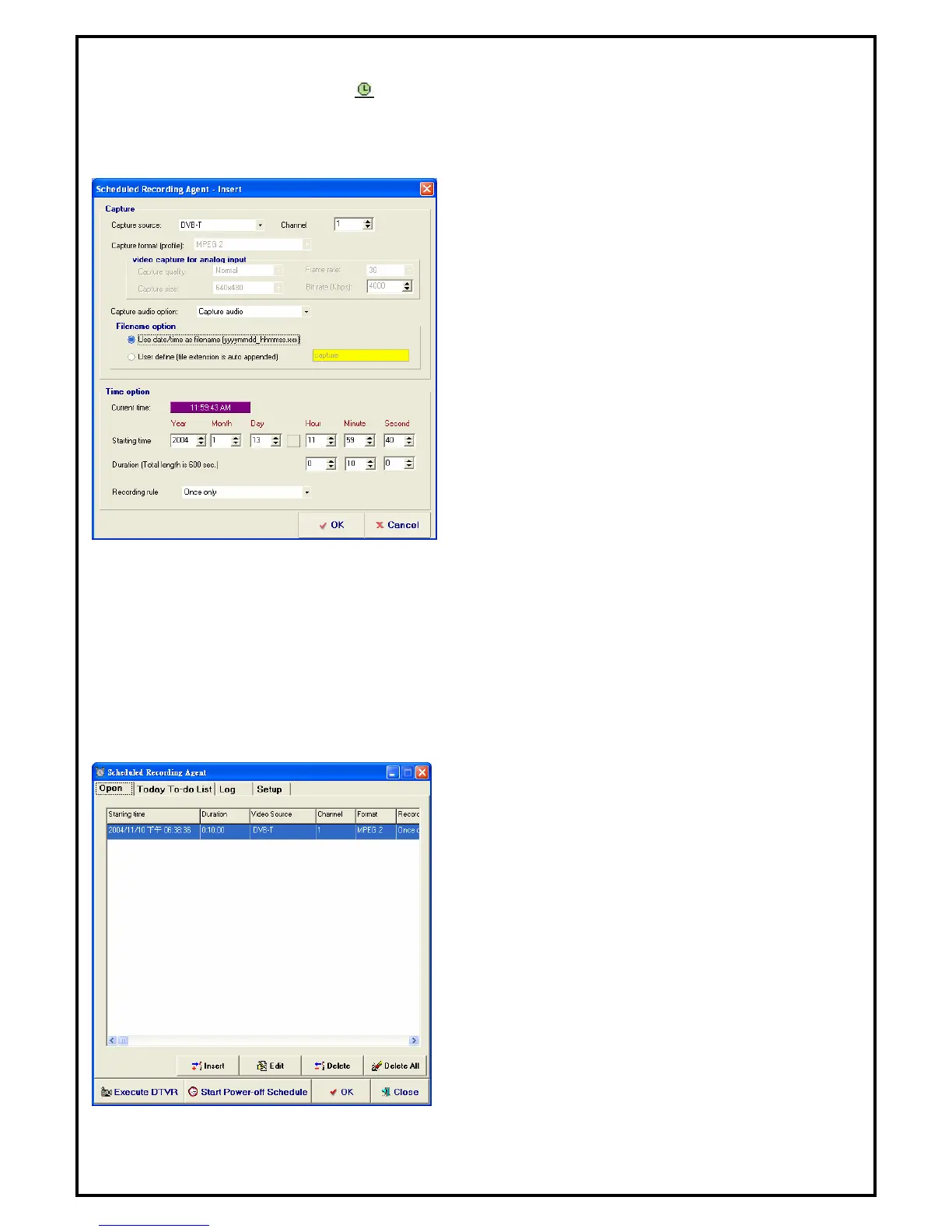 To setup a schedule recording, click from the control panel to enter the “Schedule Recording Agent”