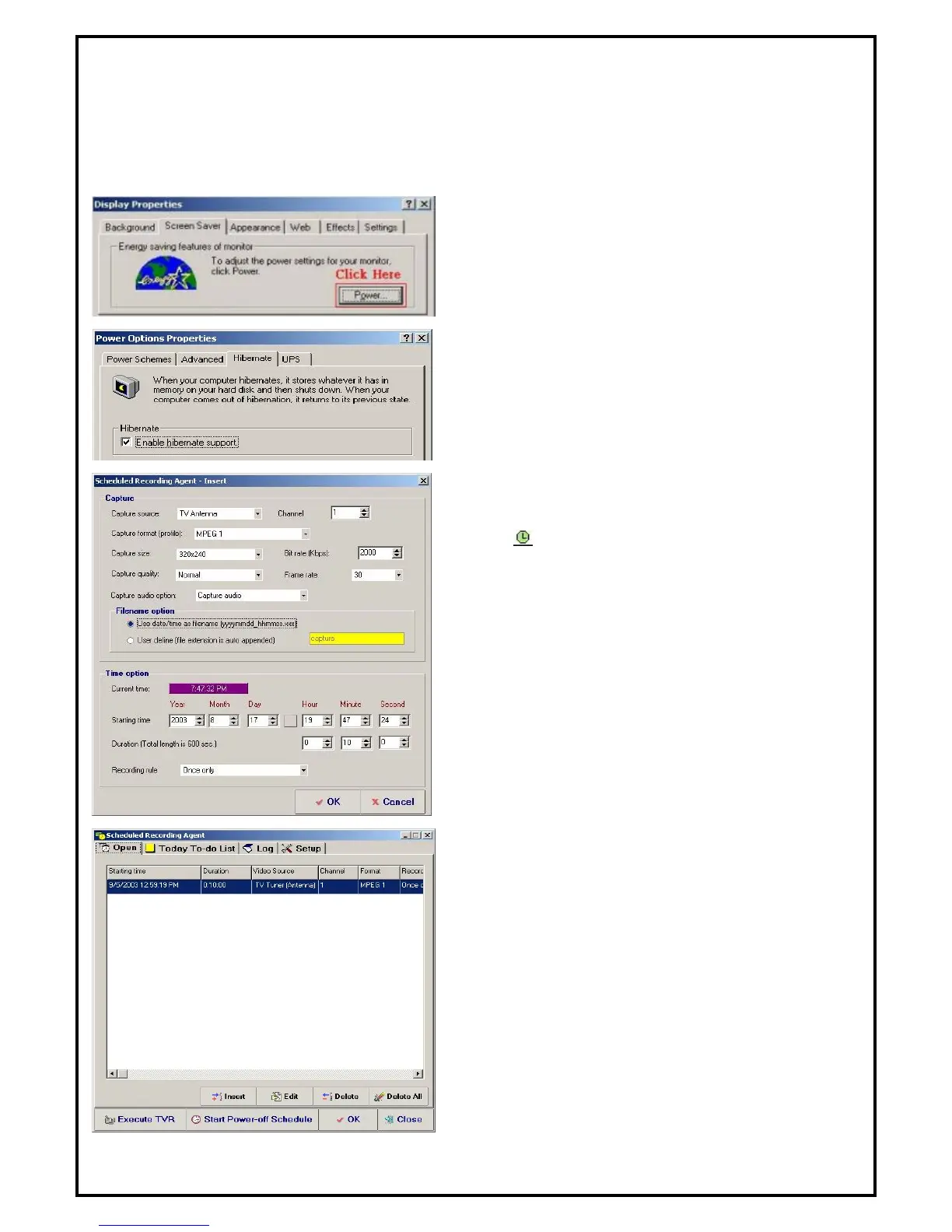 ANS: Before you use the power-off schedule recording function, please make sure your system can support
