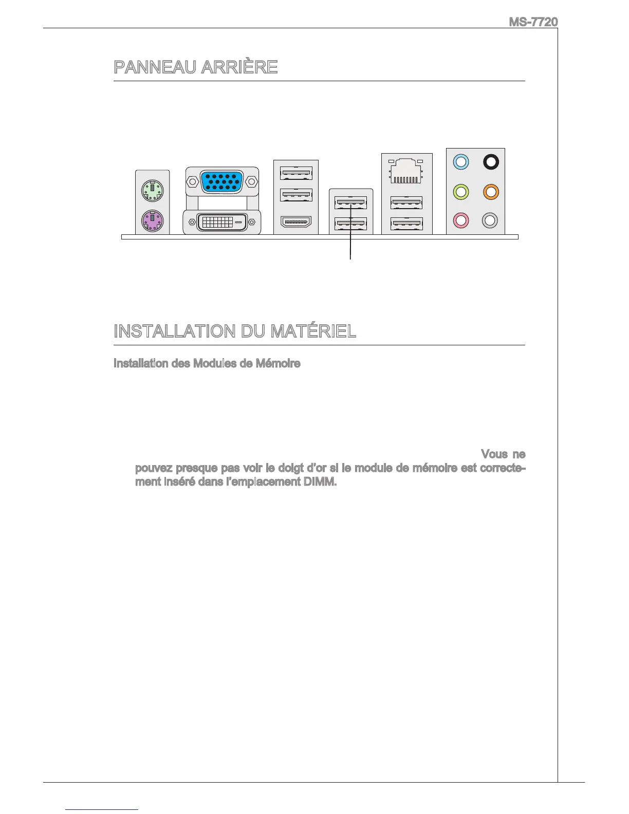 MSI E350DM-E33 Series - Panneau Arrière; Installation du Matériel
