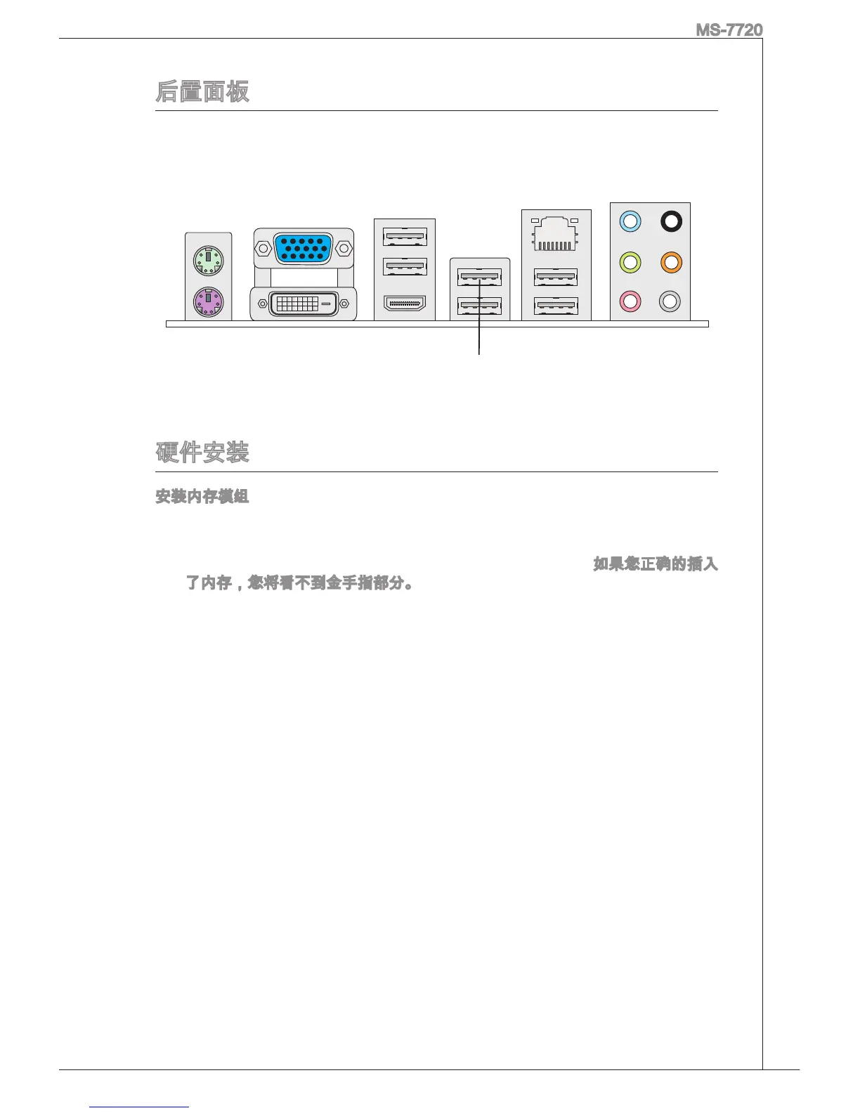 MSI E350DM-E33 Series - 后置面板; 硬件安装
