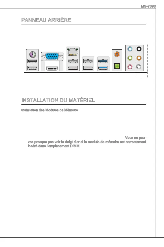 MSI E350IA-E45 - Panneau Arrière; Installation du Matériel