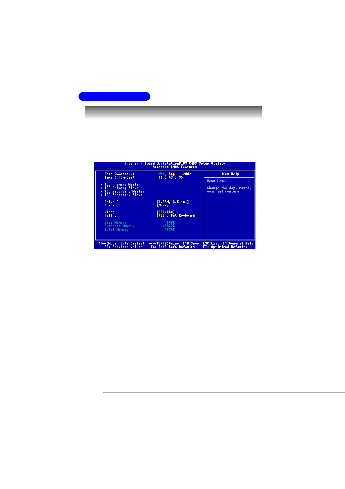 arrow keys to highlight the item you want to modify and use the <PgUp> or