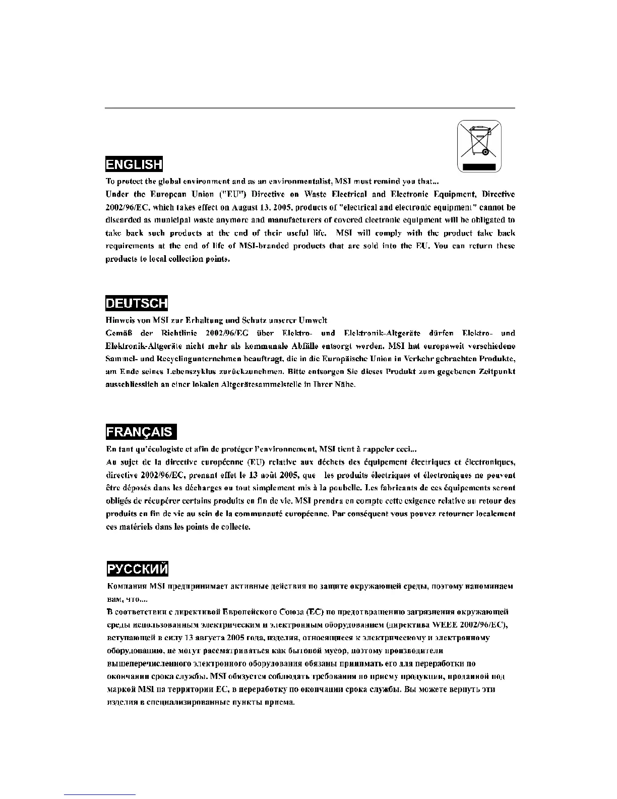 MSI Fuzzy 945GM2 - WEEE (Waste Electrical and Electronic Equipment) Statement