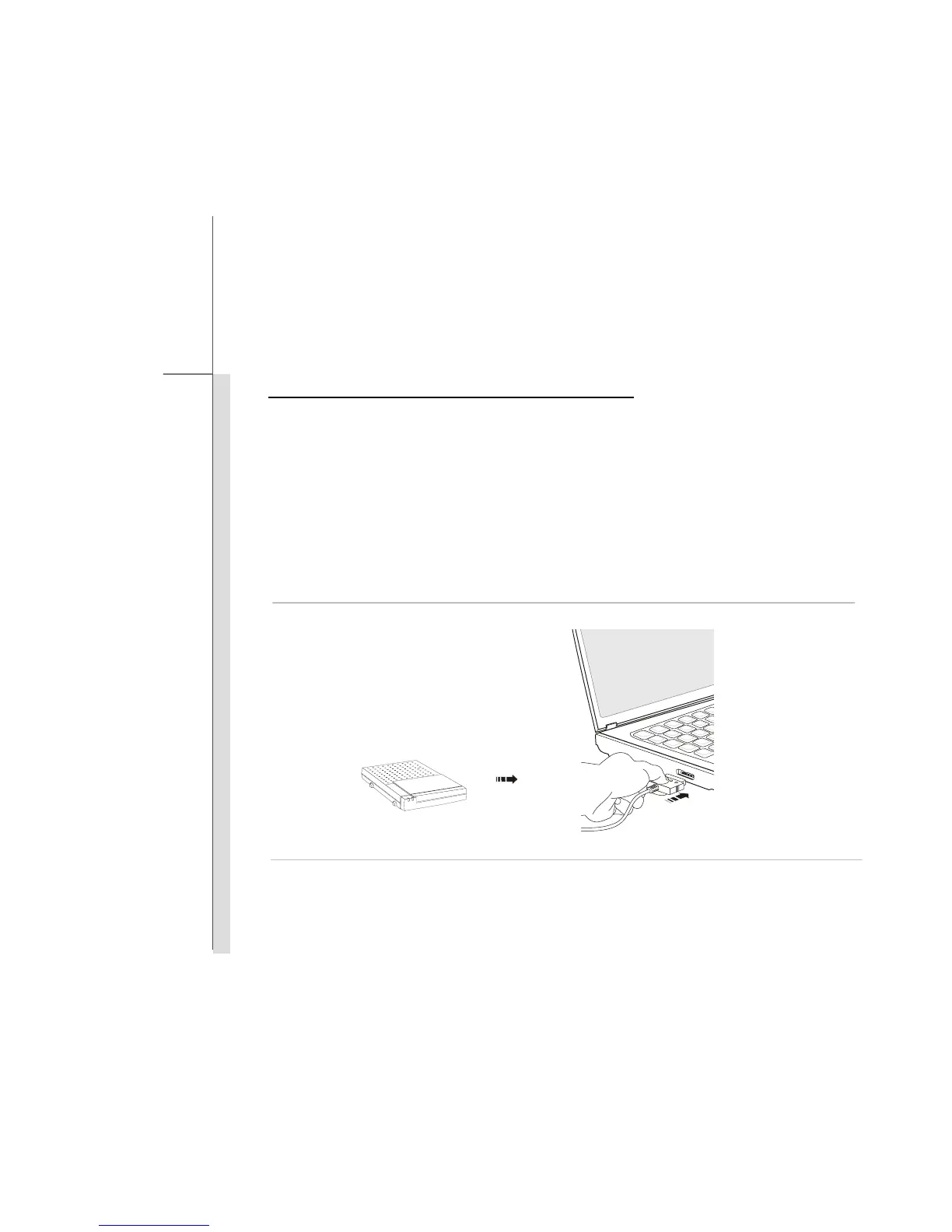 To connect the E-SATA hard disk device, simply connect the cable of the device to the E-SATA