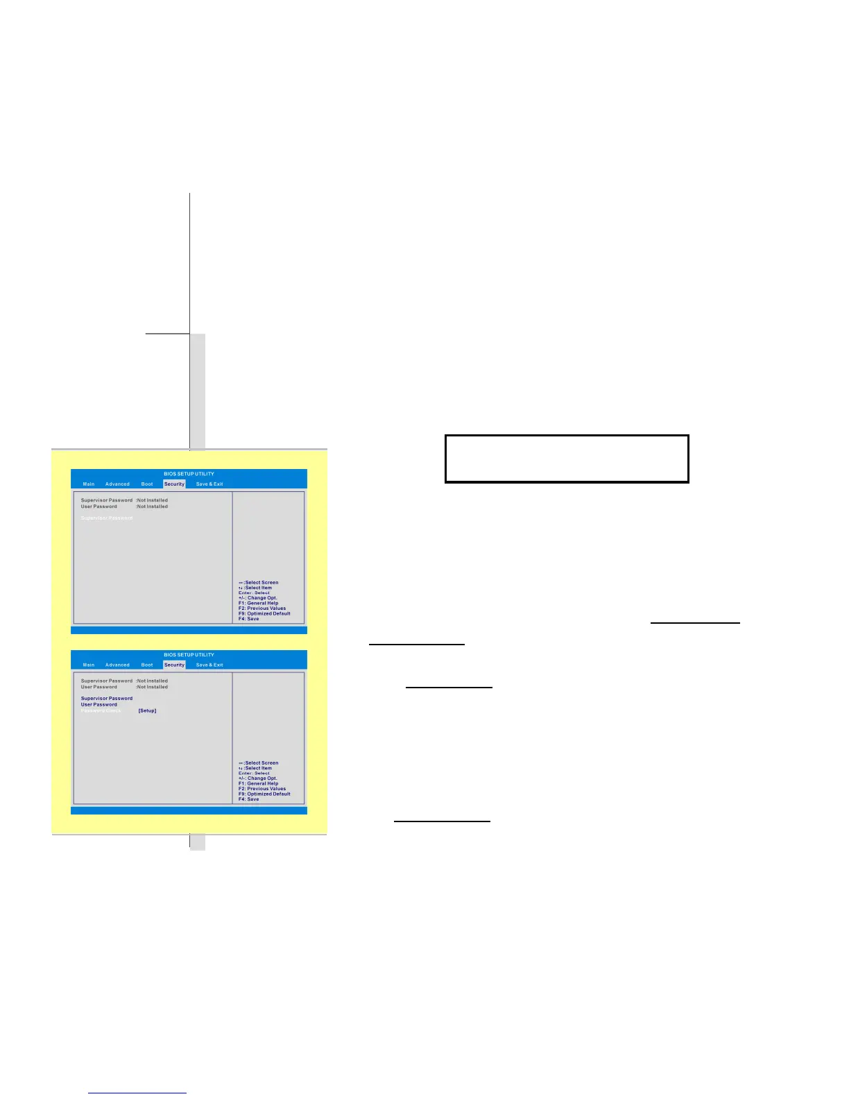 Note that Supervisor Password field allows users to enter and change the