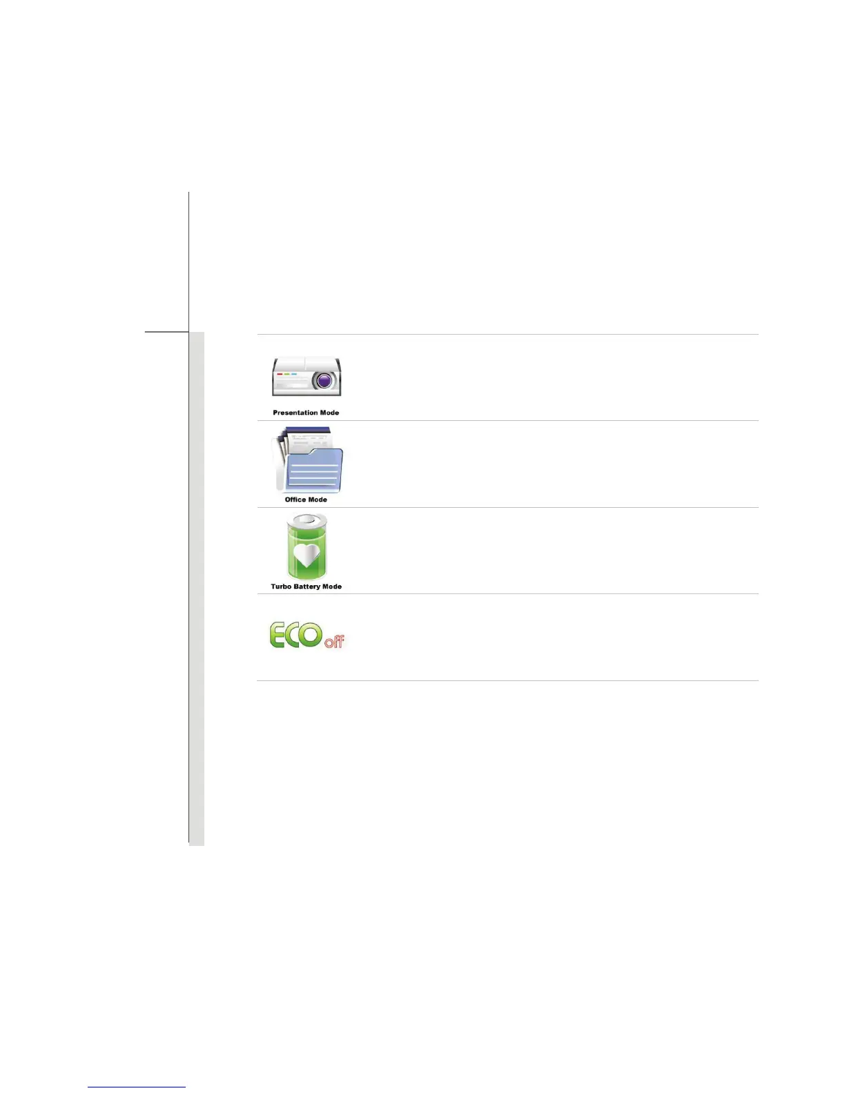 Select this mode to maximize the battery running time.