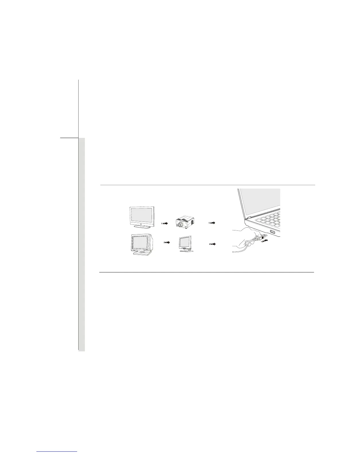 To connect the external display, make sure the notebook and the external display are both powered