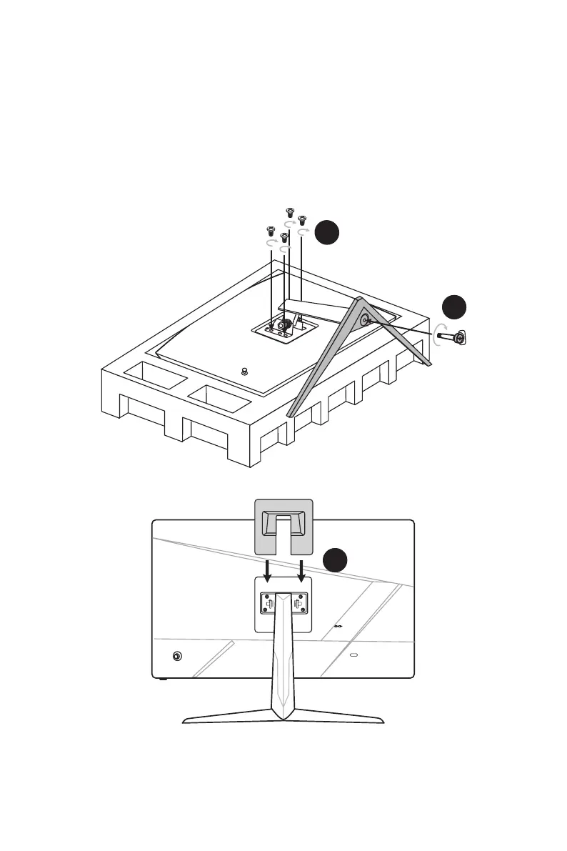 4. Make sure the stand assembly is properly installed before setting the monitor
