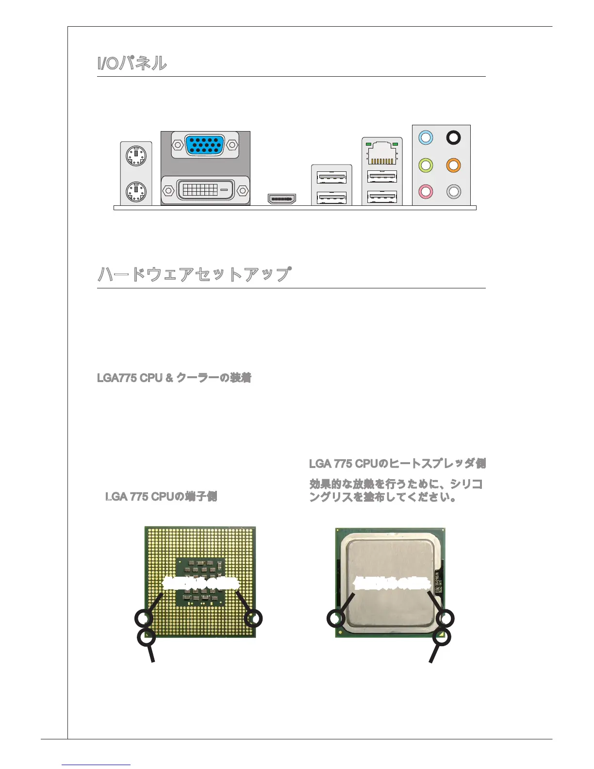 MSI G4M-e43 - I;Oパネル; ハードウェアセットアップ