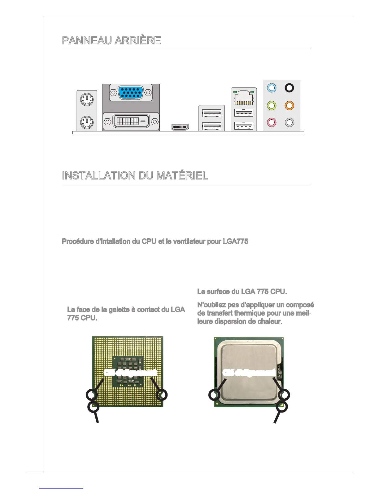 MSI G4M-e43 - Panneau Arrière; Installation du Matériel