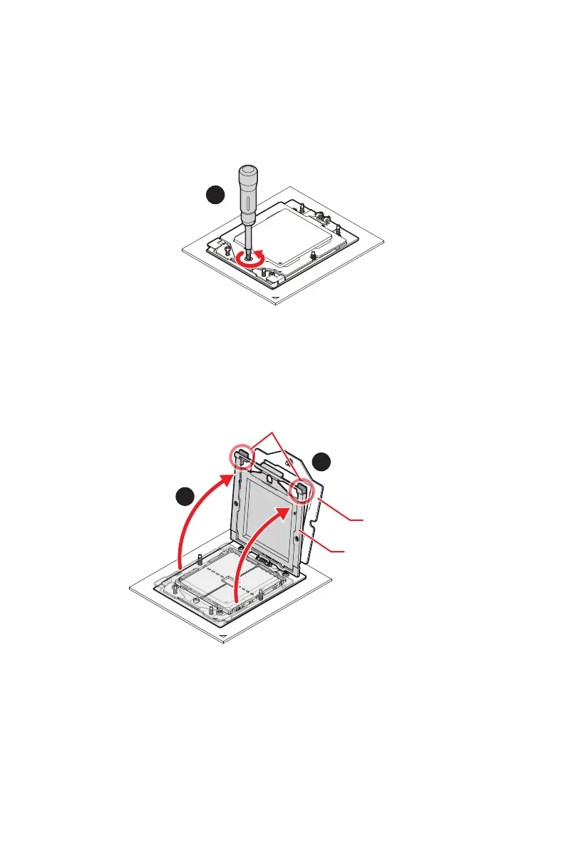 2. After removing the top screw, the spring-loaded retention frame will rise up. Hold