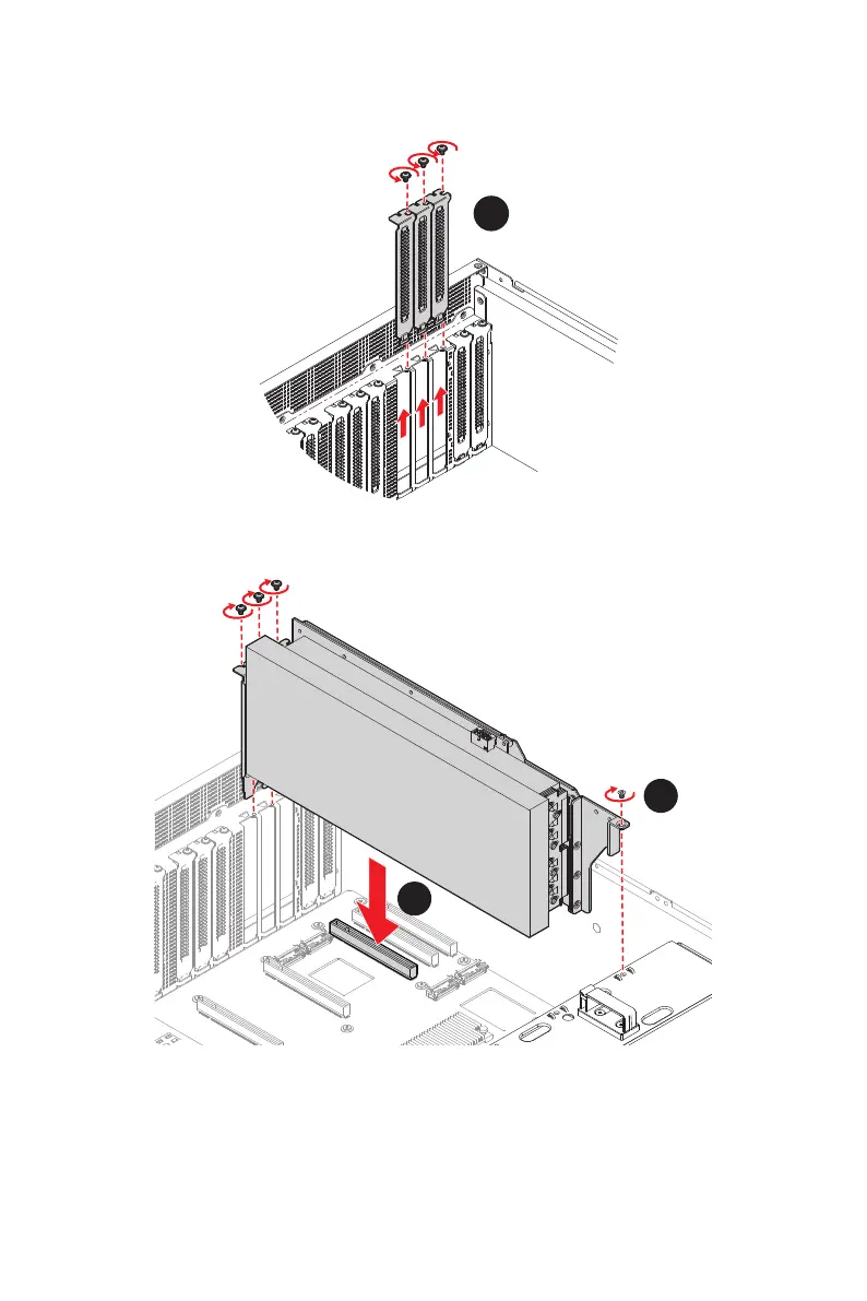 5. Tighten the screws to securely fix the GPGPU card assembly in place.