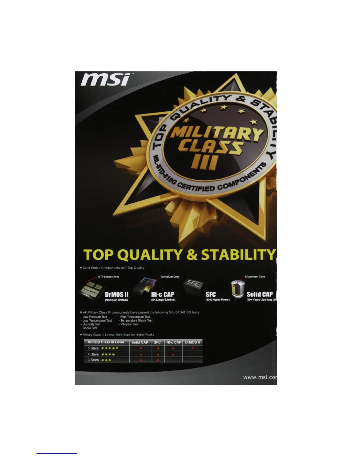 • All Military Class III components have passed the following MIL-STD-810G tests