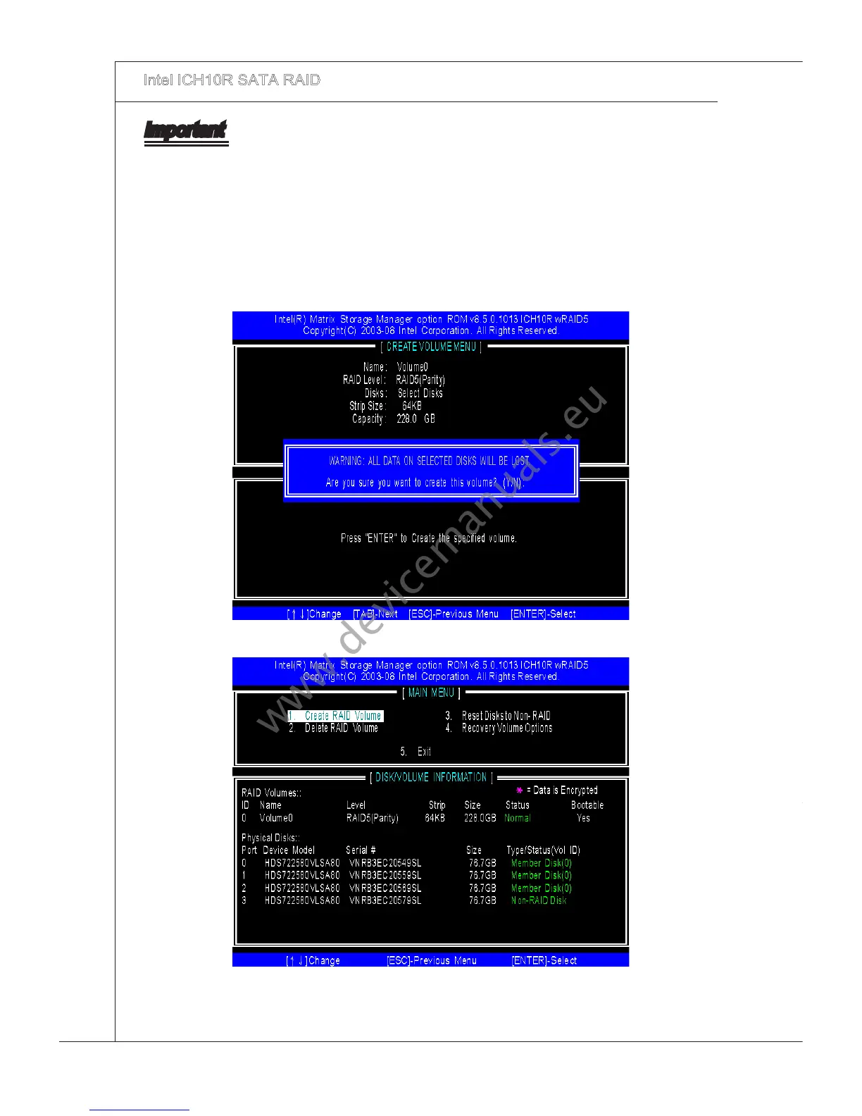 Snce you want to create two volumes (Intel Matrx RAID Technology), ths default sze