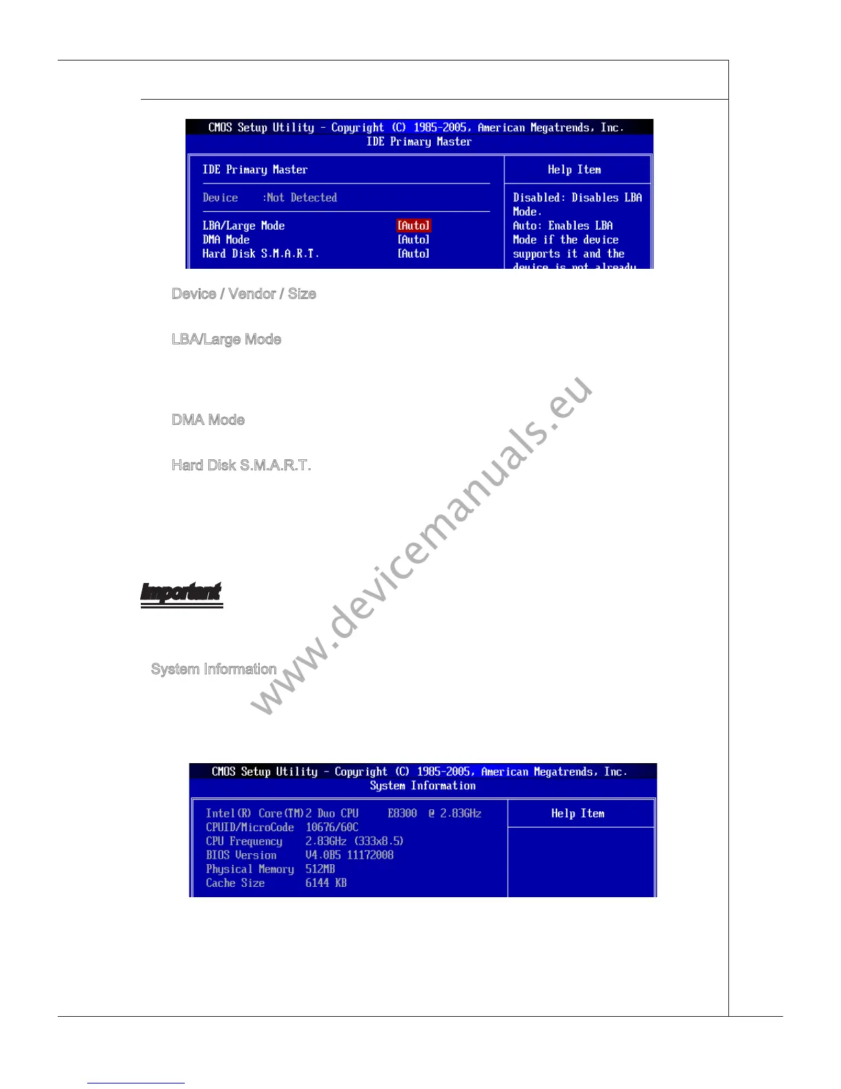 Ths sub-menu shows the CPU nformaton, BIOS verson and memory status of your