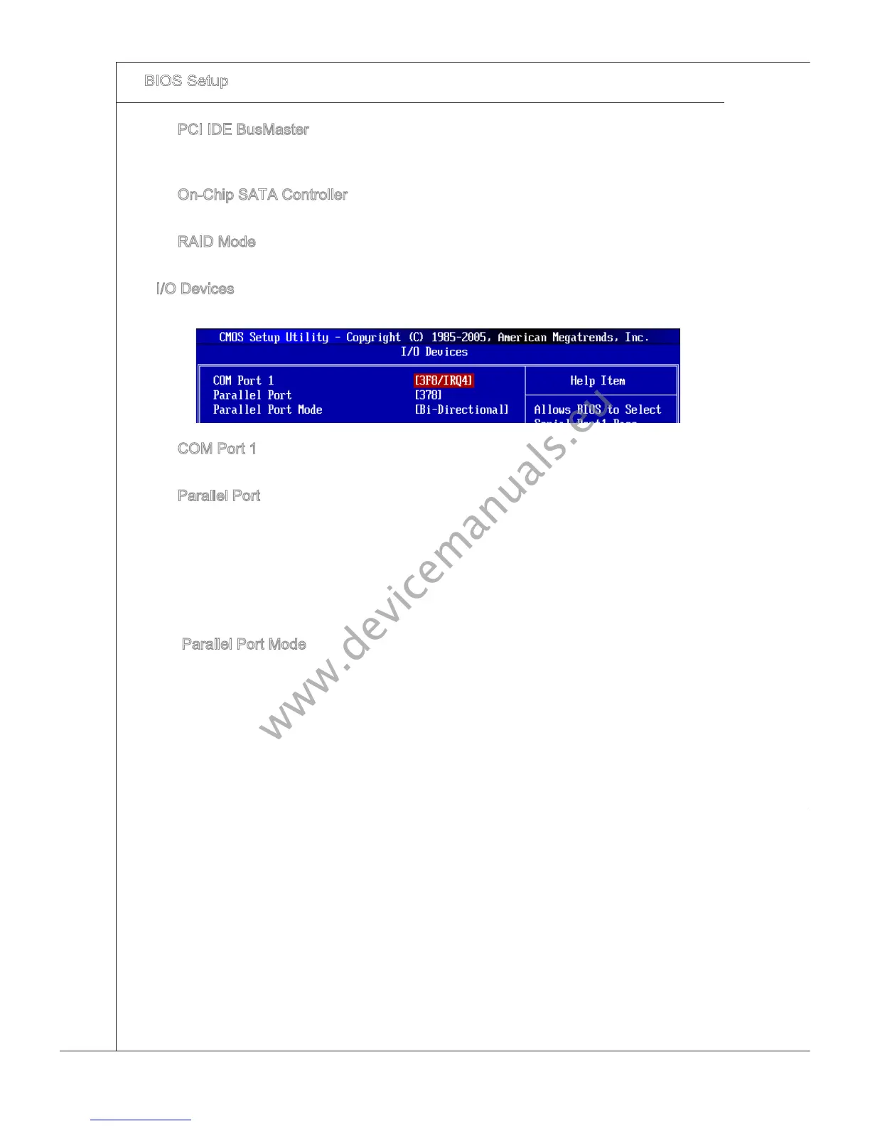 To operate the onboard parallel port as Standard Parallel Port only, choose [Nor-