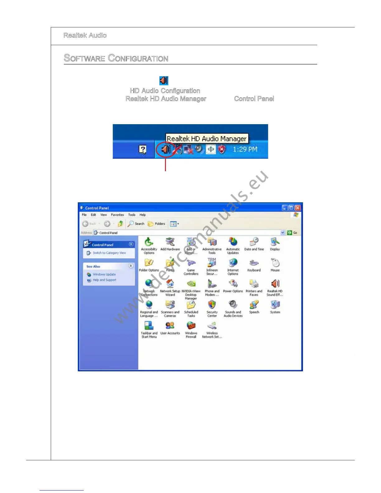 drver by clckng the Realtek HD Audo Manager from the Control Panel.