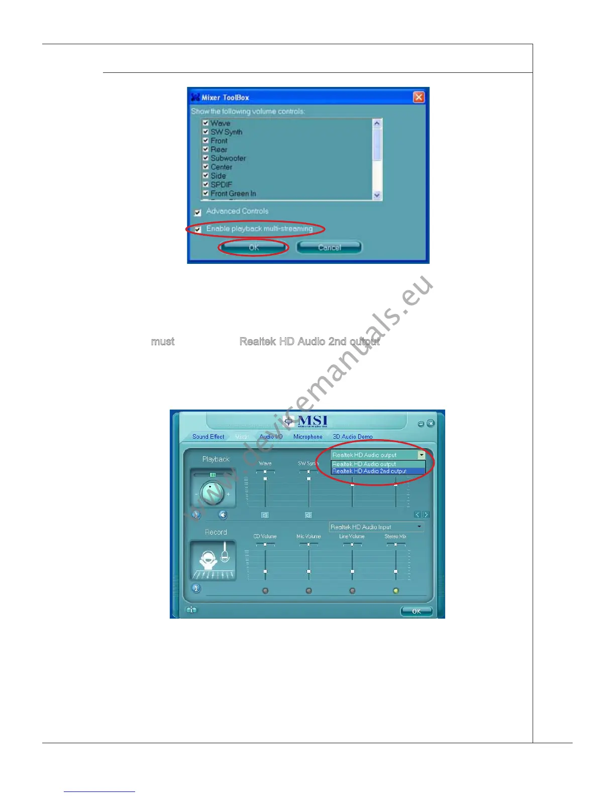 When you are playng the rst audo source (for example: use Wndows Meda Player