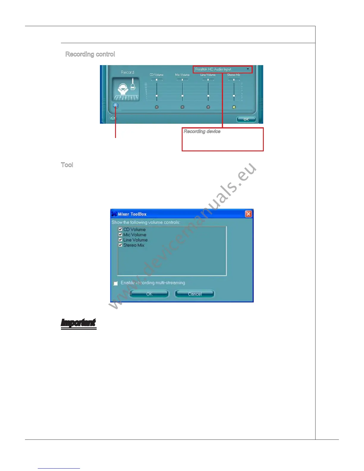 Realtek audo allows you to record the CD, Lne, Mc and Stereo Mx channels smul-