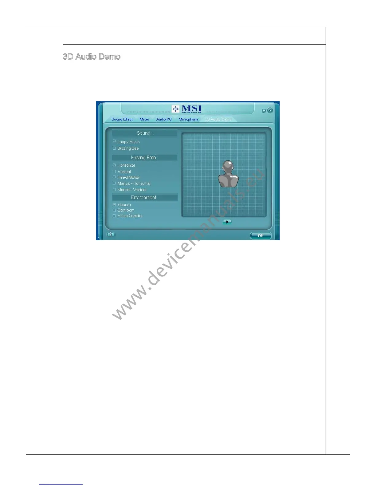 In ths tab you may adjust your 3D postonal audo before playng 3D audo applcatons