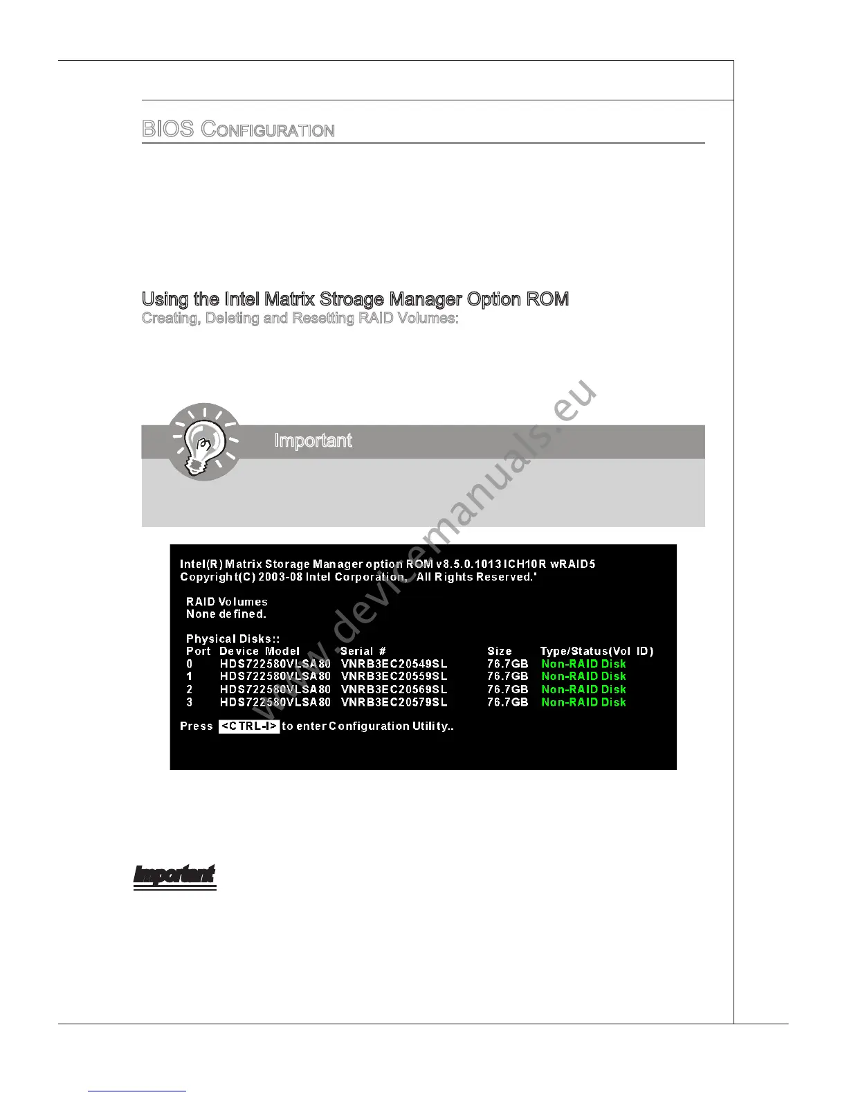 The Seral ATA RAID volume may be congured usng the RAID Conguraton utlty