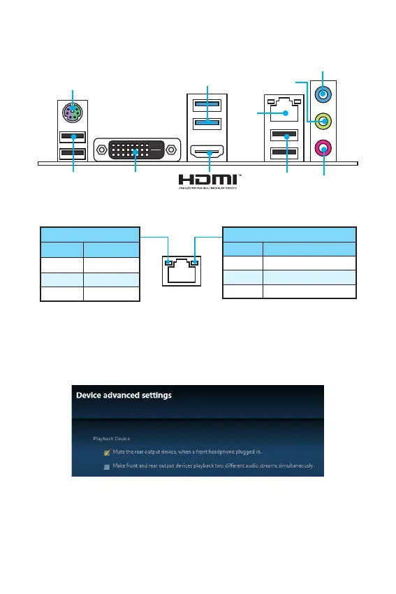 MSI H110I PRO - 網路連接埠 Led 燈狀態表