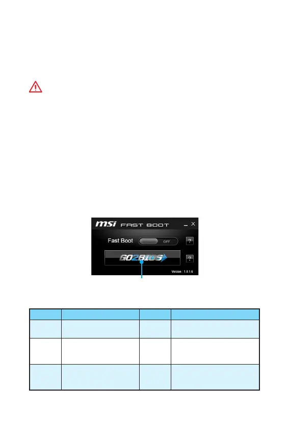 y При помощи приложения MSI FAST BOOT. Нажмите на кнопку GO2BIOS и