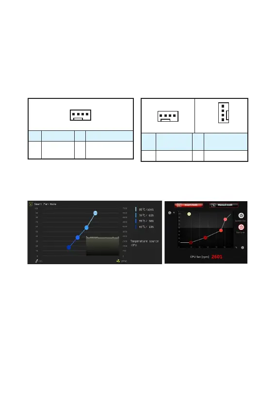 Connecteurs pour ventilateurs en mode PWM Connecteurs pour ventilateurs en mode tension